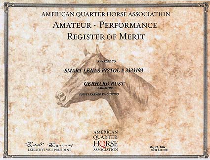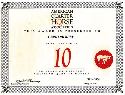 Auszeichnung für Gerd Rust - 10 Jahre erfolgreiche QH Zucht |