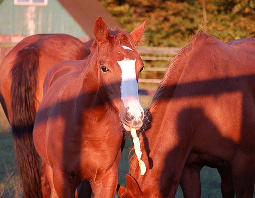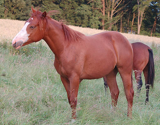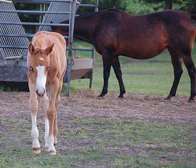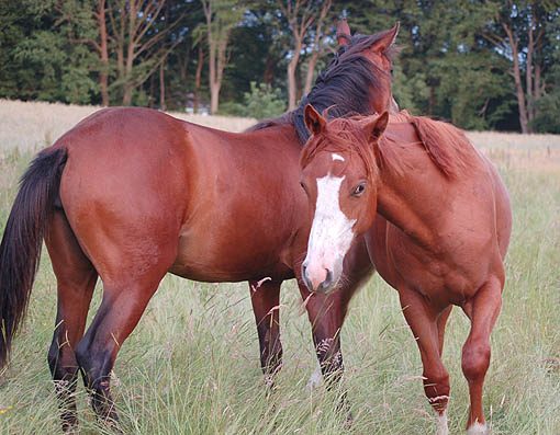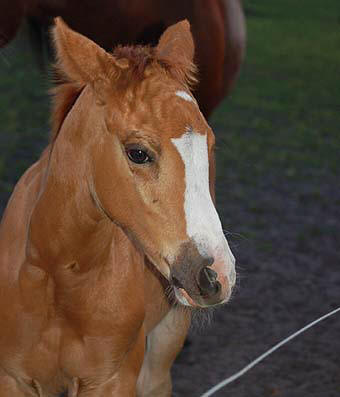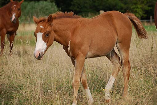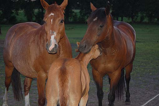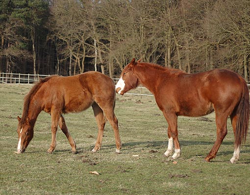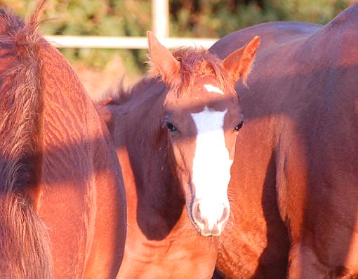 "Twinkle" ist ein hübsches selbstbewußtes Fohlen - und bei den Tanten auf der Weide ist sie wohl behütet - da kann Mama Twin auch mal "ausspannen" . . . Twinkle am 04.Juni 2009 |